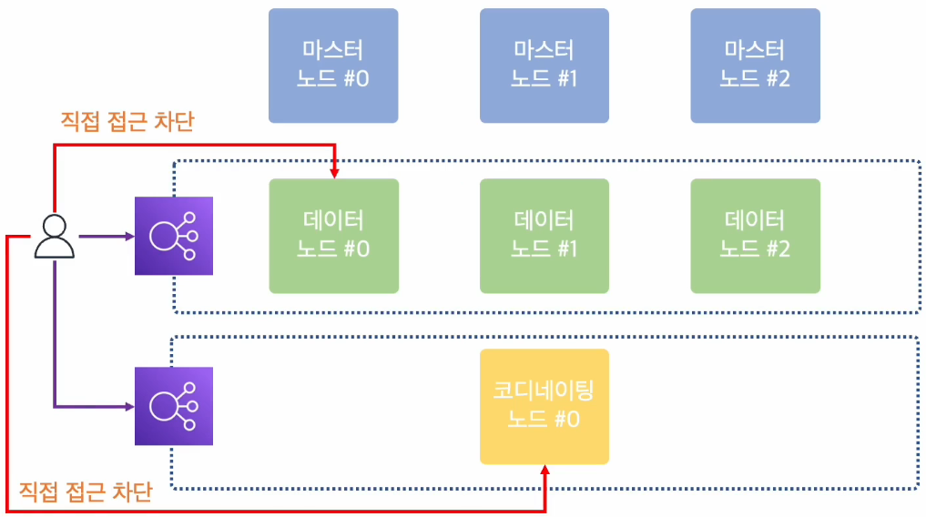 데이터 노드에 대한 직접적인 접근은 차단하고 앞단에 있는 LB를 생성하여 데이터 노드와 통신이 이루어지게 하고, LB의 엔드포인트 주소로 만 검색과 색인이 가능하도록 구성하는게 좋다.